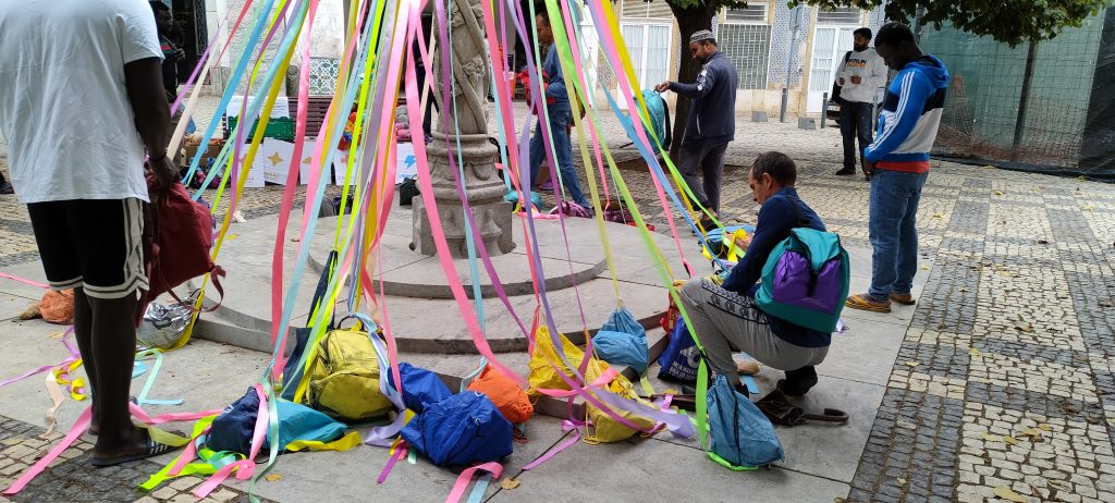 As mochilas usadas, pintadas em sete cores vibrantes, representaram o desejo de reescrever a narrativa deste espaço. Cada cor e cada mochila, recolhidas pelos alunos, trouxeram uma mensagem de empatia, transformação social e compromisso com um futuro melhor. Durante o período de exibição pública, as mochilas e outros donativos estiveram disponíveis para qualquer pessoa carenciada, ampliando o alcance solidário da iniciativa.