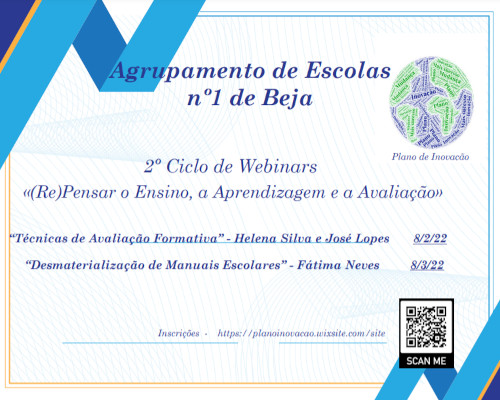 No âmbito do Plano de Inovação aprovado para o ano letivo 2021/23, será dinamizado o 2.º Ciclo de Webinars “(Re)Pensar o Ensino, a Aprendizagem e a Avaliação”. O primeiro Webinar será apresentado pela Professora Helena Santos Silva e pelo Professor Ler mais …