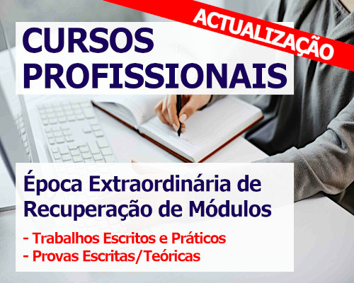 Já está disponível a PAUTA DE RECUPERAÇÃO DE MÓDULOS POR TRABALHOS/PROJETOS PRÁTICOS (Época Extraordinária de Recuperação de Módulos) – Época de setembro – Consulte a pauta aqui. Também já está disponível a PAUTA DE RECUPERAÇÃO DE MÓDULOS POR AVALIAÇÕES ESCRITAS Ler mais …