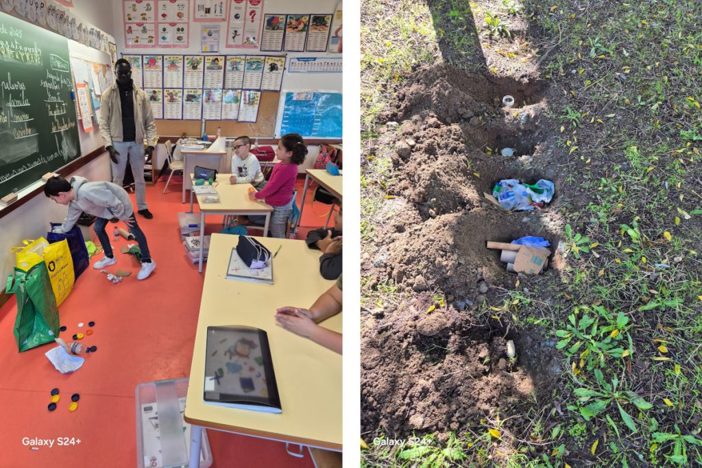 Durante a sessão, os alunos tiveram ainda a oportunidade de participar numa experiência prática destinada a identificar materiais biodegradáveis, o que contribuiu para a compreensão de conceitos essenciais relacionados com a proteção ambiental.
