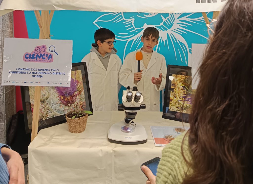 Destaca-se ainda a participação dos alunos António Barreto e Martim Faustino (na imagem), que se voluntariaram para colaborar nas atividades do evento, assumindo a responsabilidade de apresentar o projeto “Sê Ciência”, no qual a turma está envolvida em parceria com o CEBAL.