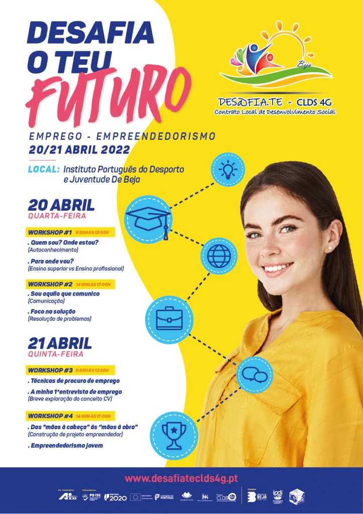 O Projeto Desafia.te CLDS 4G, em parceria com o Agrupamento de Escolas nº1 de Beja, vai realizar a “Feira de Emprego e Empreendedorismo”, exclusivamente destinada aos alunos do 12º ano de escolaridade da Escola Secundária Diogo de Gouveia.