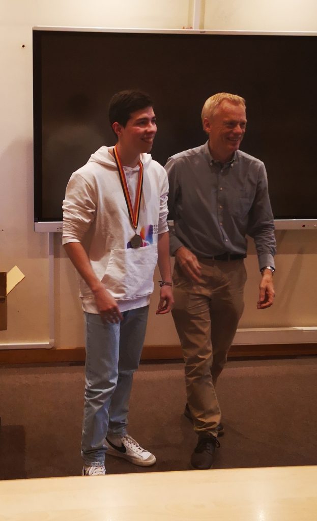 O aluno Dinis Filipe Rocha da Cruz conquistou, no passado dia 22 de abril, a medalha de ouro nas Olimpíadas Regionais de Física 2023, depois de realizadas as provas teórica e prática, na Universidade do Algarve.