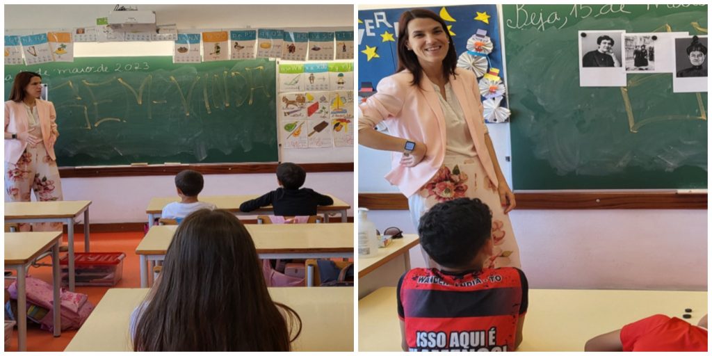 A seguir, os alunos colocaram as suas questões as quais foram prontamente respondidas. A D. Margarida ainda nos confidenciou que foi por causa da admiração que nutre por esta senhora, que colocou o nome de Carolina à sua filha. Gostámos bastante de receber a D. Margarida na nossa sala e agradecemos a sua disponibilidade.