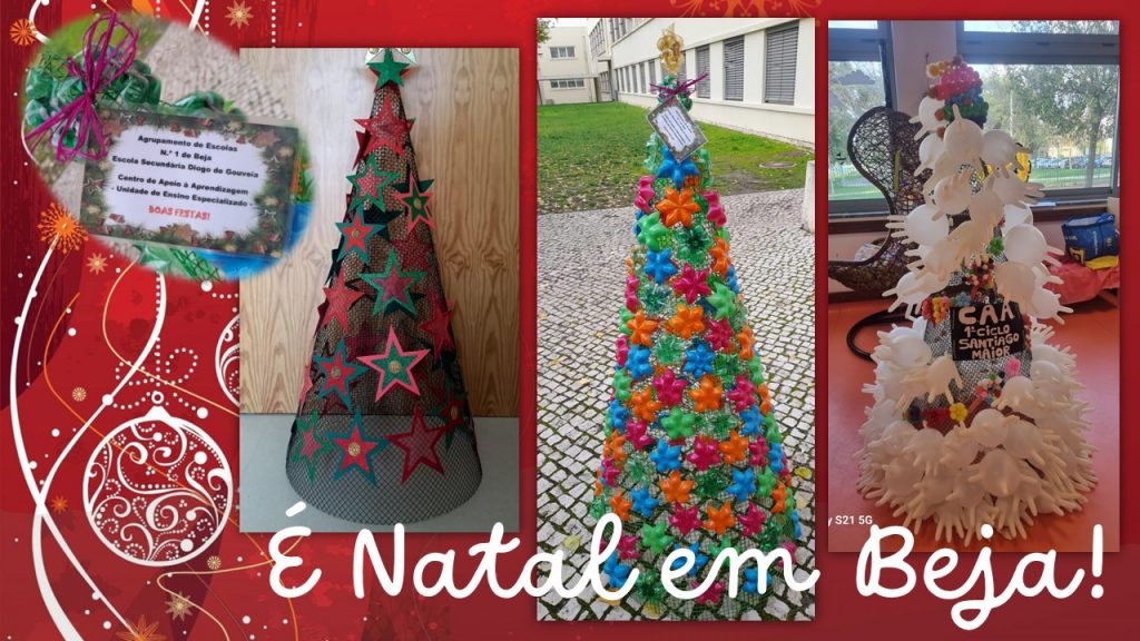 Neste âmbito, os alunos das Unidades de Ensino Especializado do Agrupamento de Escolas n.º 1 de Beja elaboraram árvores de Natal com elementos decorativos realizados com materiais reaproveitados para decoração do Bosque de Natal (Jardim do Bacalhau).