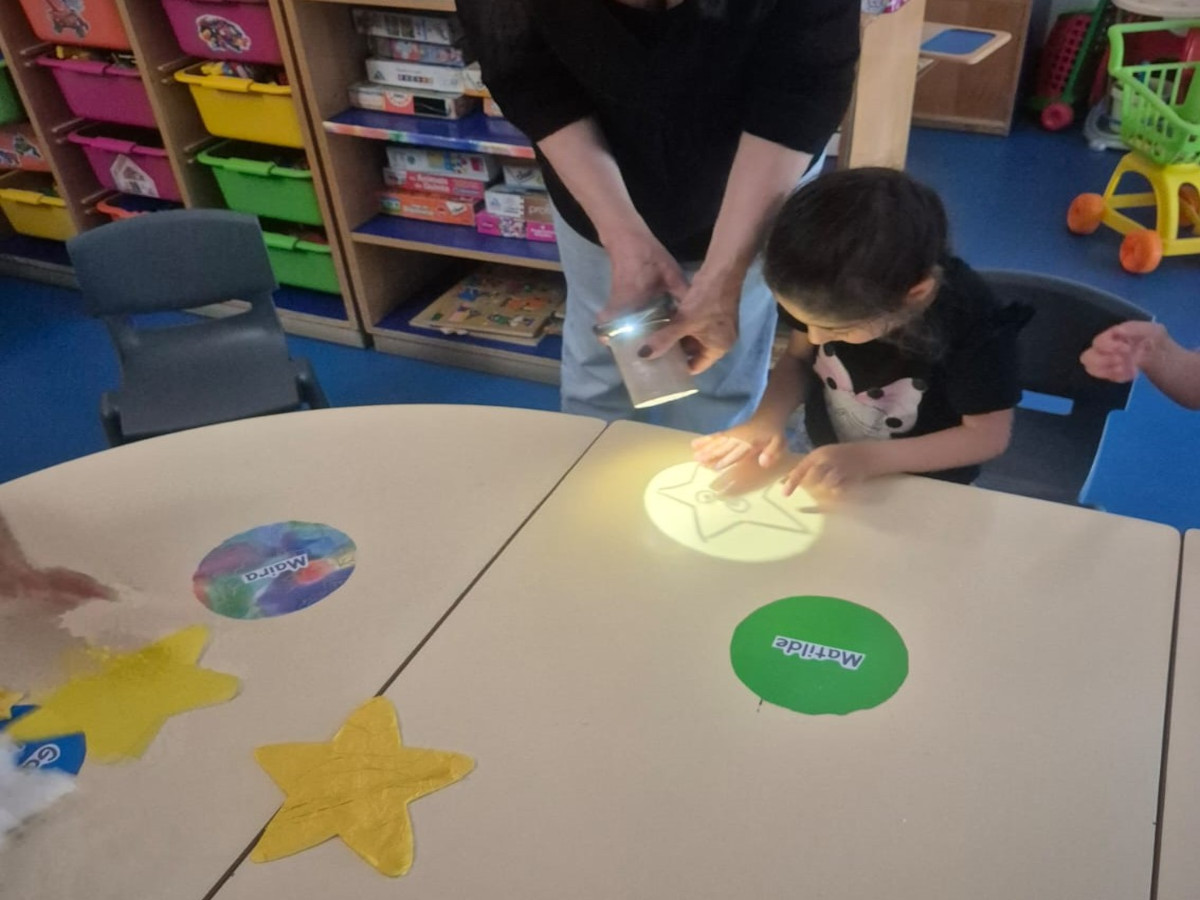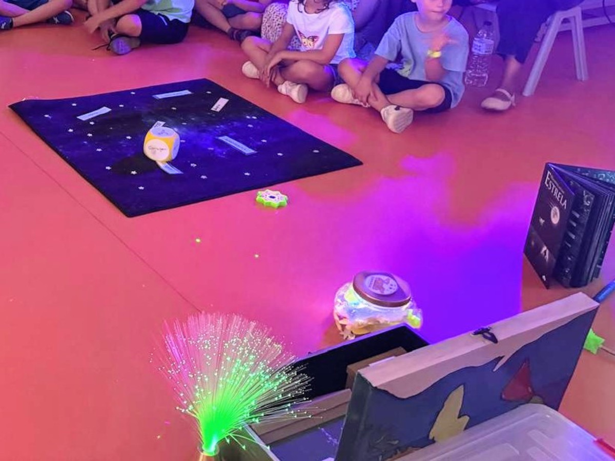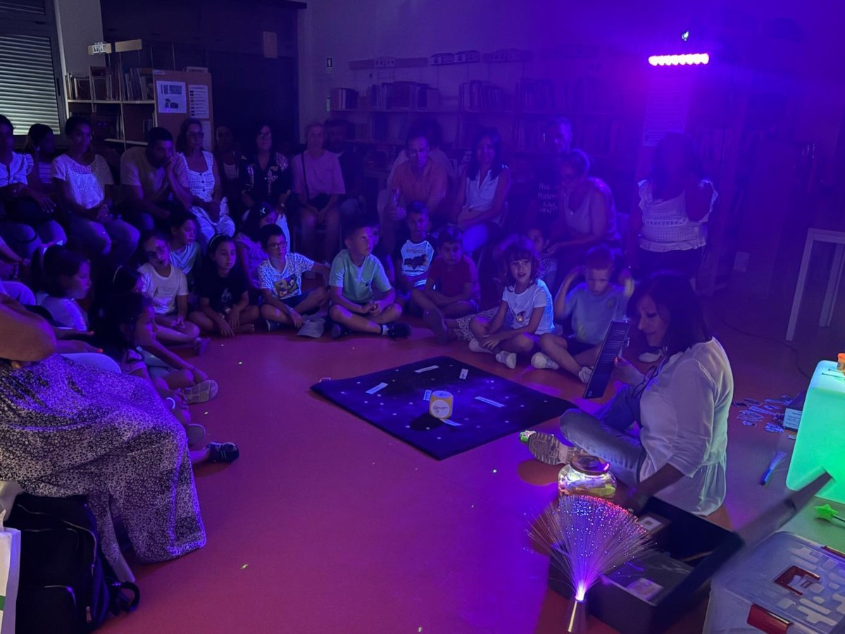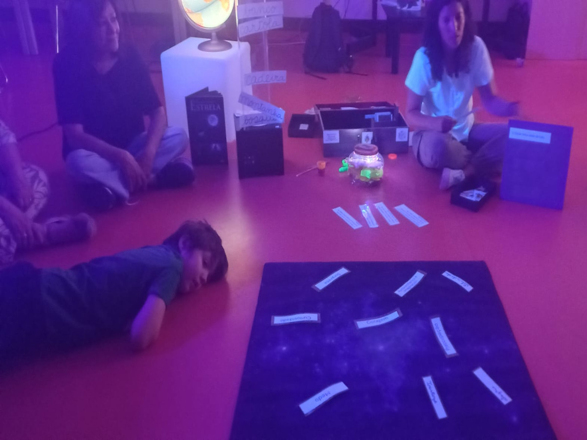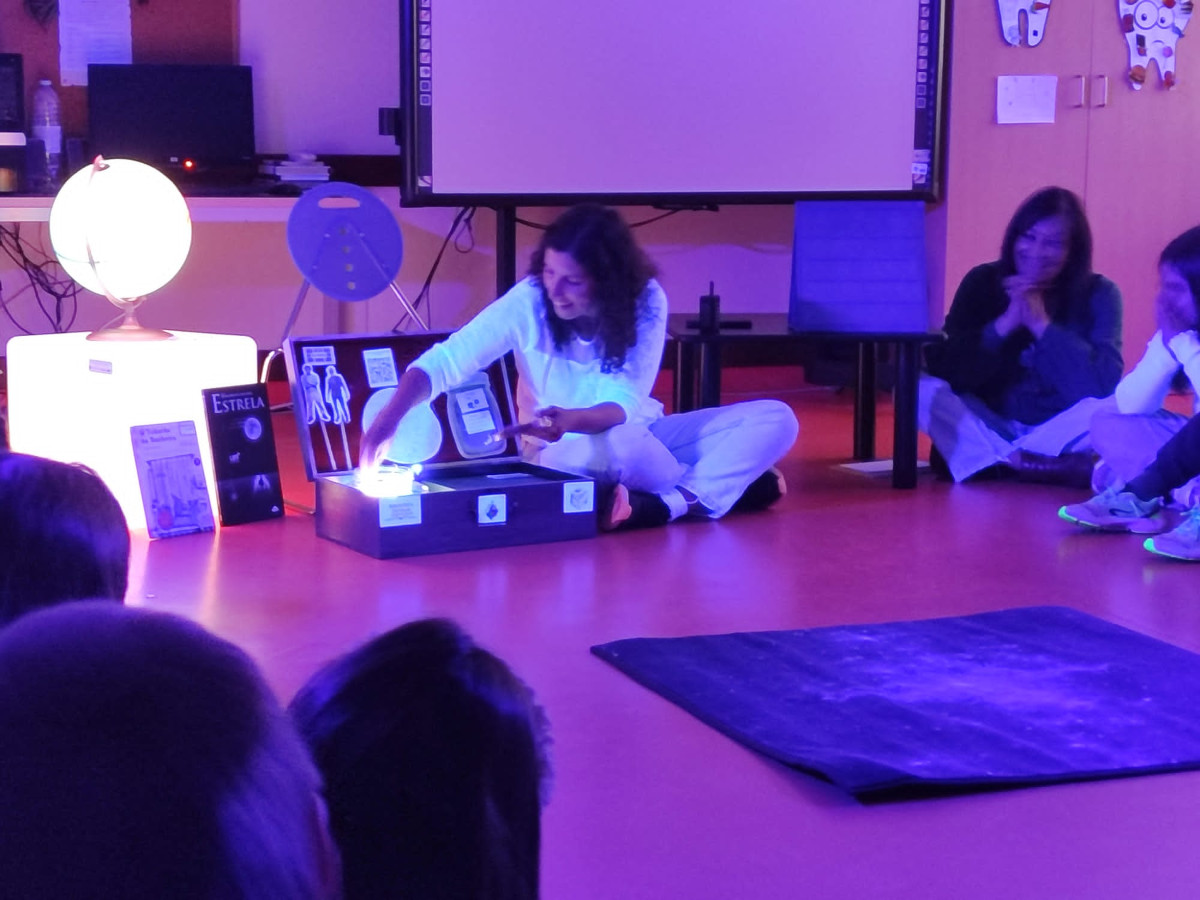 Para enriquecer o contexto de apresentação da mala interativa, as sessões destinadas às turmas decorreram na biblioteca escolar, num ambiente snoezelen, especialmente preparado para estimular os sentidos e favorecer a reflexão emocional.