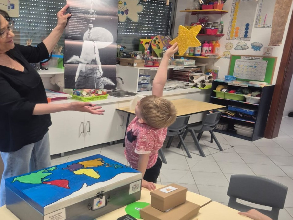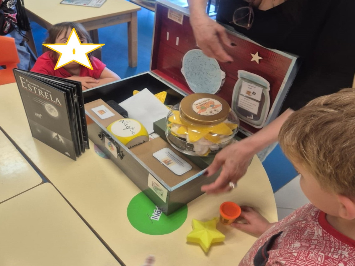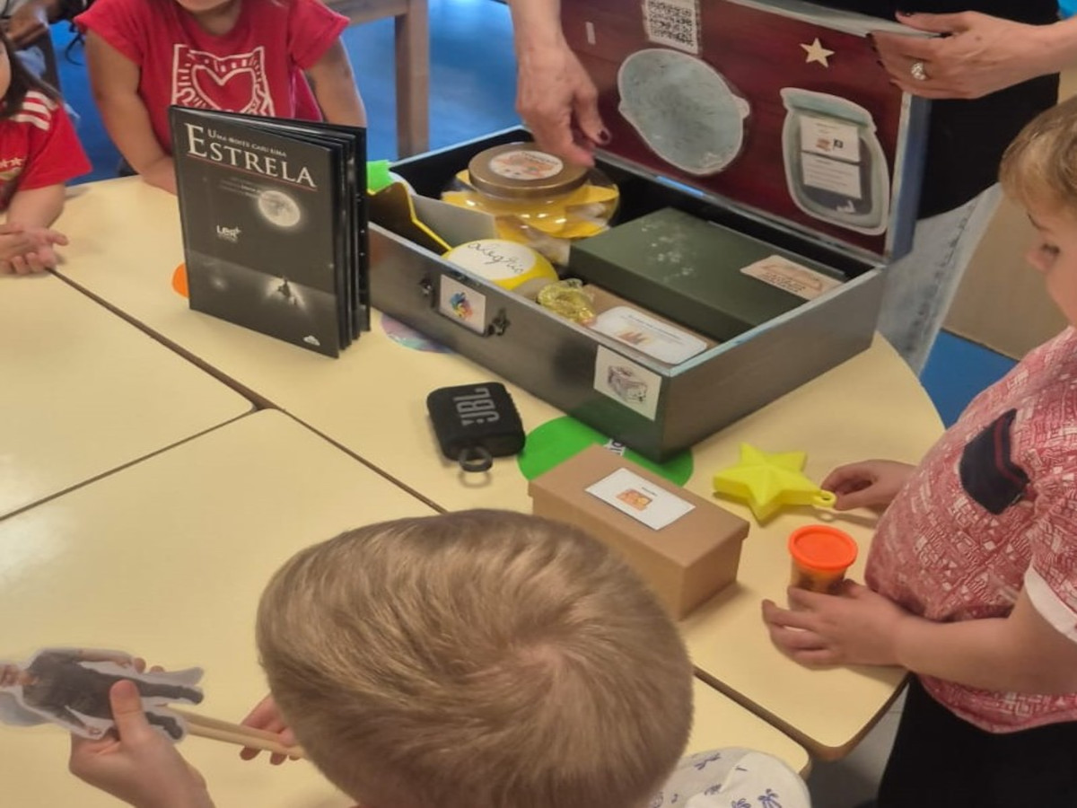 A atividade “Mala Interativa – O Livro em Viagem” teve como ponto de partida a exploração da obra Esta Noite Caiu uma Estrela, no âmbito do Concurso Literário 2025.